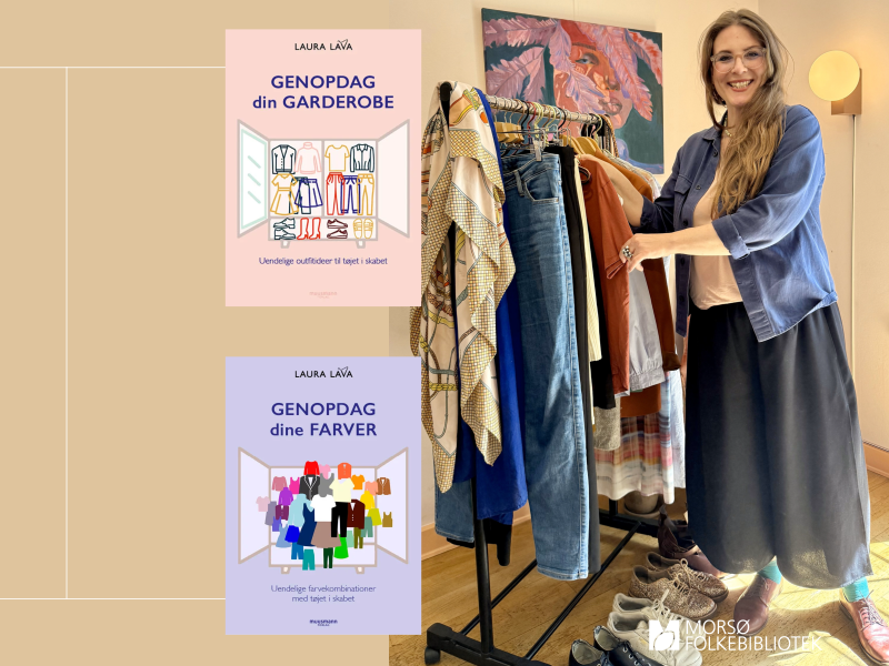 Med udgangspunkt i sine to bøger, som kan lånes på Morsø Folkebibliotek, ”Genopdag din garderobe” og ”Genopdag dine farver”, viser hun, hvordan tøj og farver bliver en praktisk nøgle til både personlig frihed og et strukturelt opgør med modebranchens overproduktion.